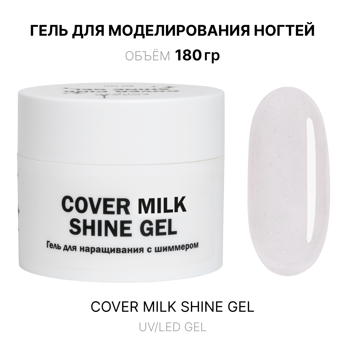 Cover Milk shine Gel Гель для наращивания молочный с шиммером 180 мл - Интернет-магазин товаров для маникюра и педикюра | Kalipso-top
